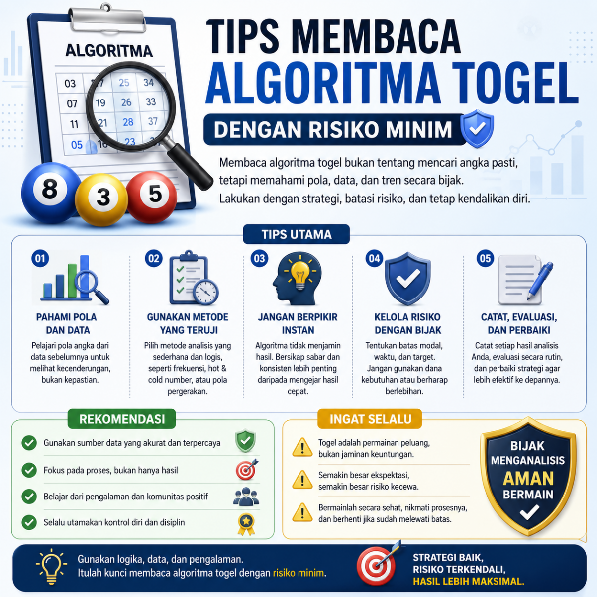 Membaca algoritma togel sering dianggap sebagai cara untuk memahami pola angka yang muncul. Namun, penting untuk dipahami sejak awal bahwa tidak ada sistem yang benar-benar bisa menjamin hasil tertentu. Dalam konteks ini, tips membaca algoritma togel dengan risiko minim berfokus pada edukasi dan cara berpikir yang lebih rasional. Pendekatan ini bukan sekadar mengejar hasil, tetapi memahami bagaimana pola terbentuk dan bagaimana risiko dapat dikelola secara bijak.